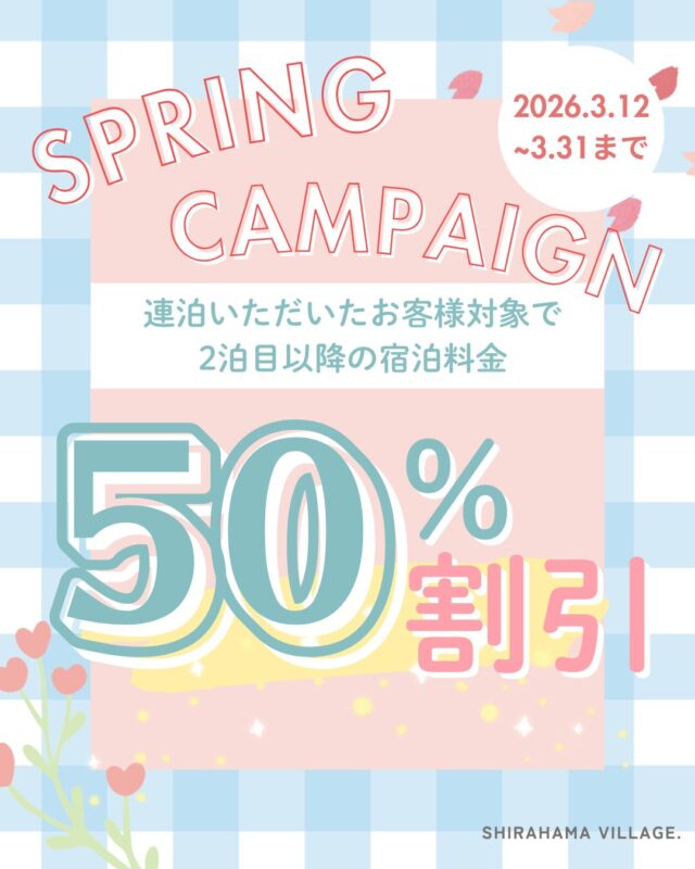 期間中、連泊いただいたお客様対象で、2泊目以降の宿泊料金を50%割引でご案内いたします✨